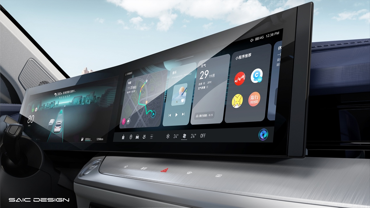 位于座舱“C 位”的双12.3英寸IMAX 高清弧形全景屏尤为吸睛,配合超窄边框,实现左右双屏无缝连接,给驾乘者提供彰显科技属性的“无界”视觉延伸感。