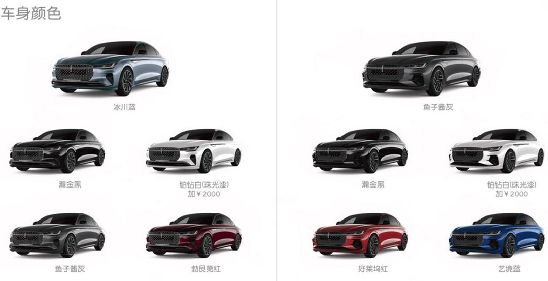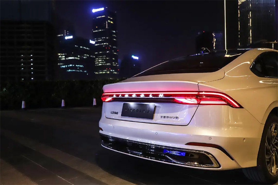 林肯Z拥有5种车身颜色,车门把手和A柱为隐藏式设计,轮圈根据不同配置有18或19英寸。车尾为溜背造型,贯穿式尾灯也是林肯的标志性设计。新车外观提供了i享型和i酷型两种包围风格,前者偏商务气息,后者则比较动感。