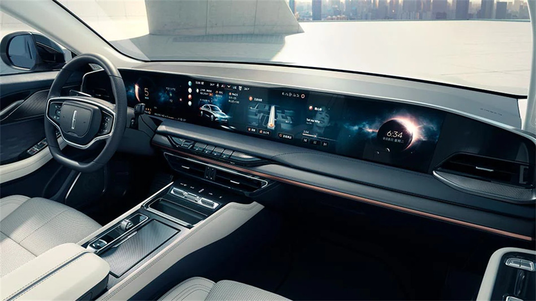 走近林肯Z,Embrace & Farewell迎宾灯语光影系统会启动,1.8米巨幅迎宾光毯出现在车身两侧。上车后,中控屏幕上方的摄像头能刷脸登录ID,让系统帮助用户自动调整好座椅设置和音乐喜好,换挡为标志性的按键式设计。