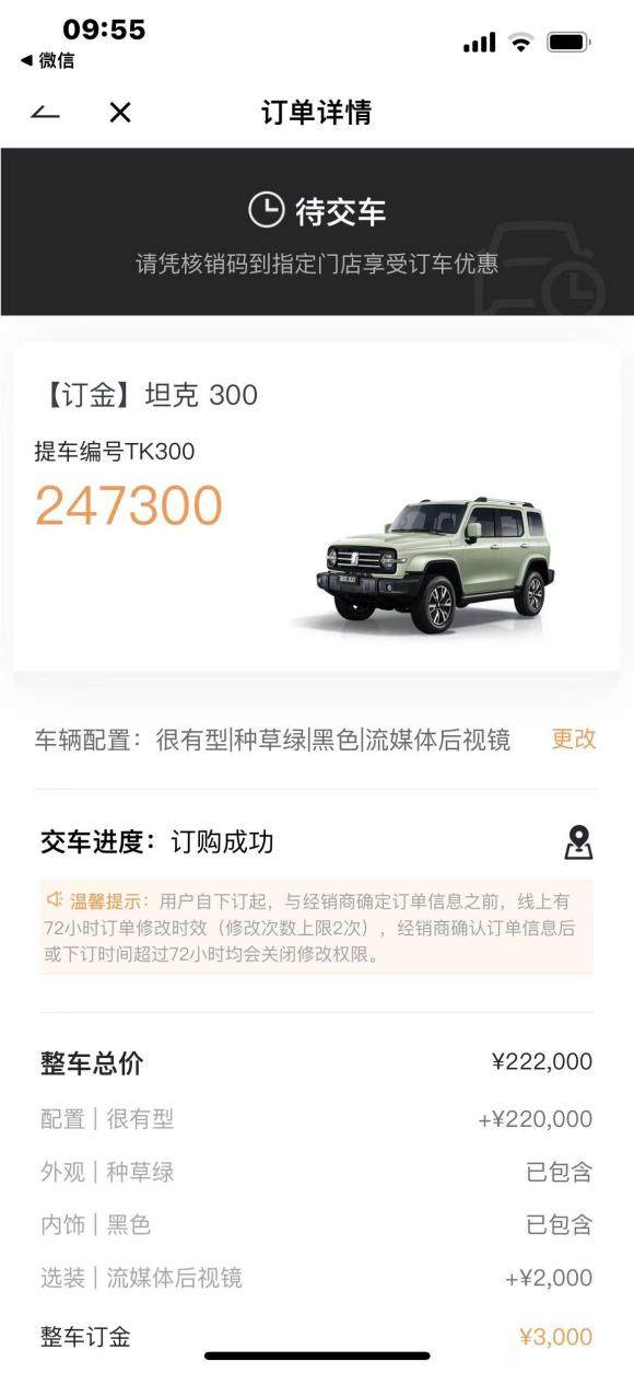 因此坦克300的市场情况也正如大家所料,订单数量每日大增。