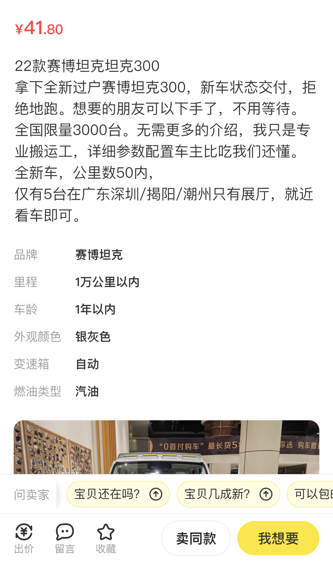 更离谱的是,赛博坦克300在“炒车”盛宴当中,还担当起最强“王者”的角色,在此前就3000辆限购的方式开售,不到半小时所有订单就被抢购一空。然而部分成功抢到的用户,却把赛博坦克300当成了“理财产品”。