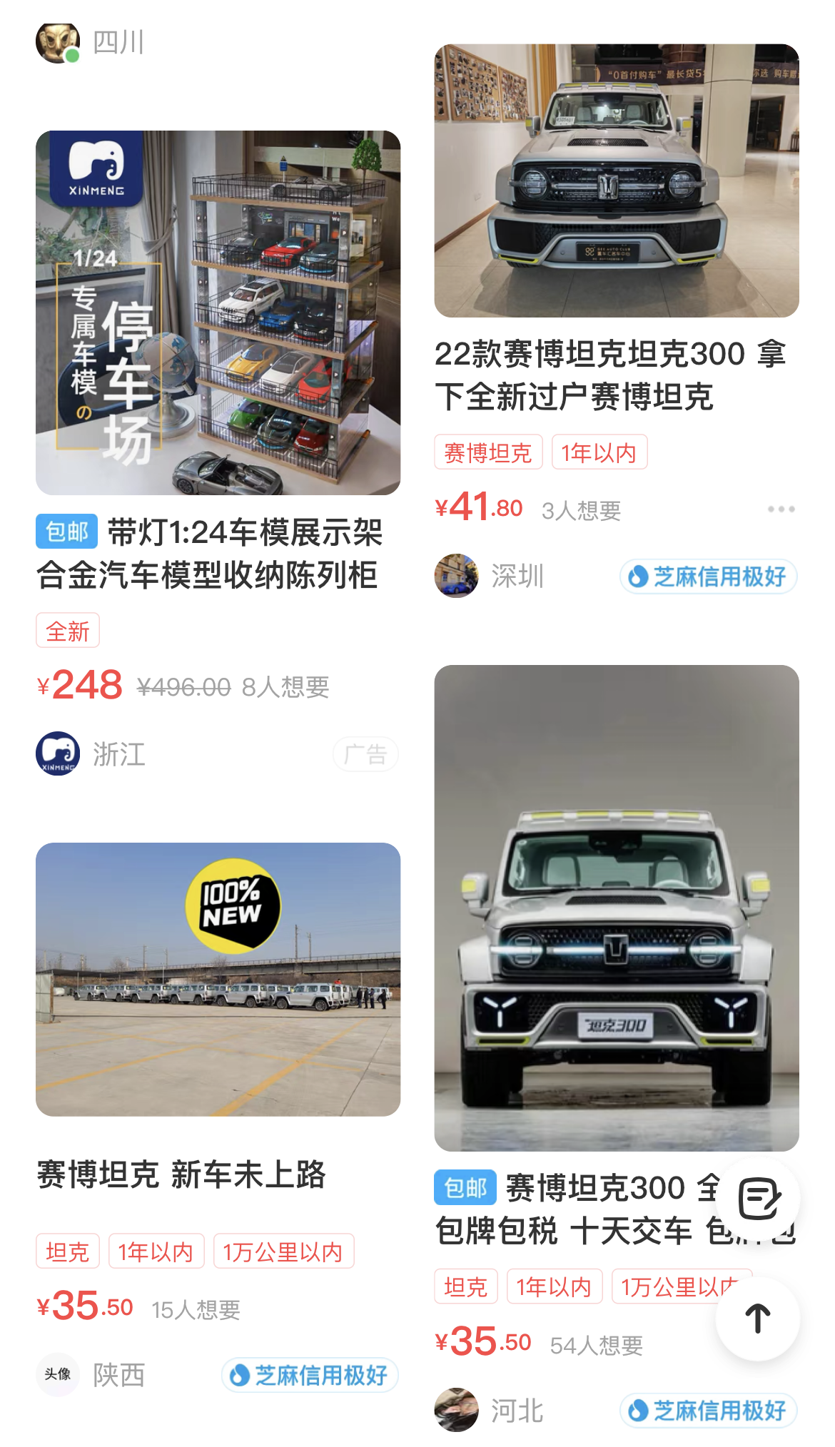 口说无凭?那拿出手机在“某鱼”APP,搜索热门车型的名字~