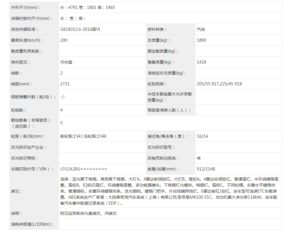 车身侧面,整体轮廓没有发生很大变化,不过新增了18英寸轮毂,轮毂尺寸为225/45 R18。同时新车的车身尺寸也发生了变化,其长宽高分别为4791mm/1801mm/1465mm,轴距为2731mm,整个车长增加了38mm,视觉效果显得更加修长。