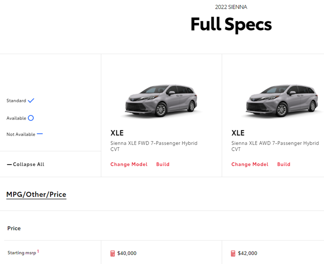 而美版XLE的两驱和四驱版差了2000$(约合人民币12756.4元),可以给GRANVIA未来的差价作参考。