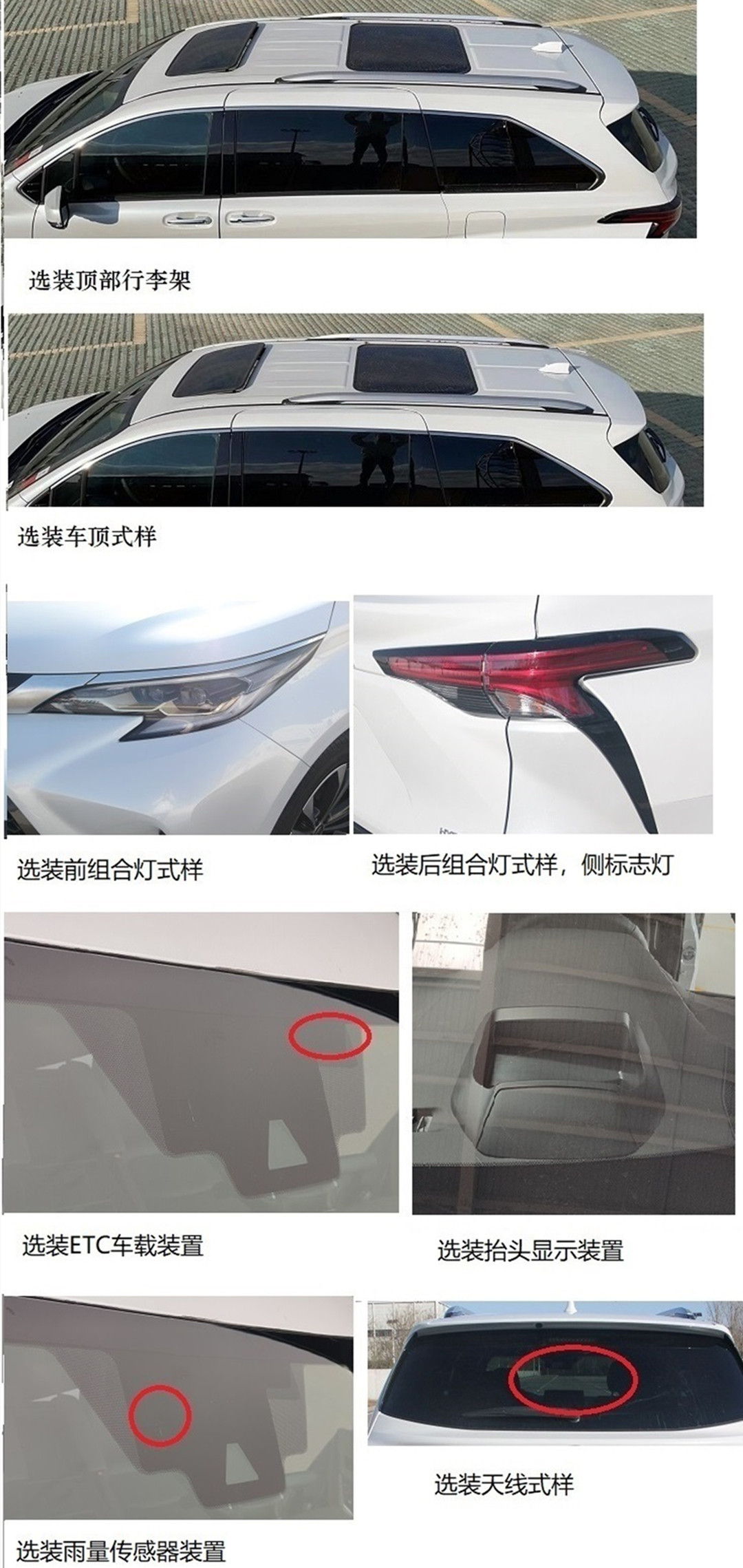 选装有18和20寸轮毂、360度全景摄像头、双天窗、行李架、HUD抬头显示、自动雨刷等,并有福祉版车型。