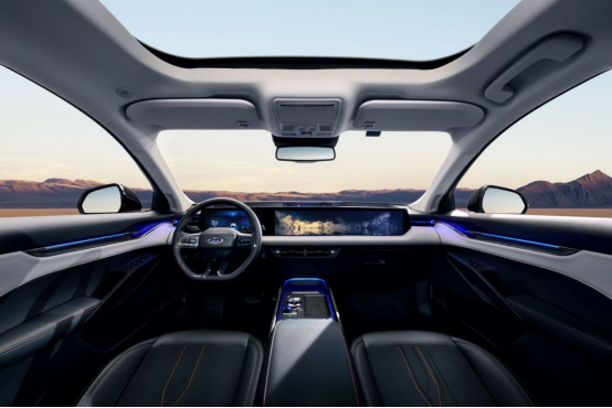 在内饰设计上,新一代蒙迪欧采用环抱式座舱设计,将科技、功能与造型完美地融为一体,营造出宁静科技的未来座舱氛围。