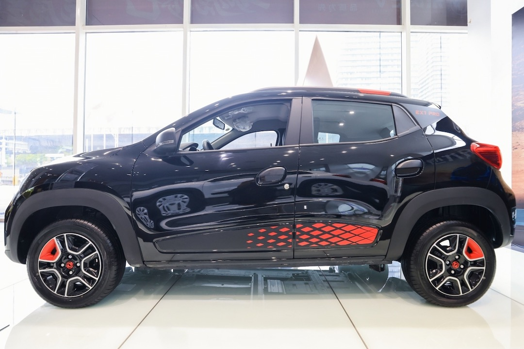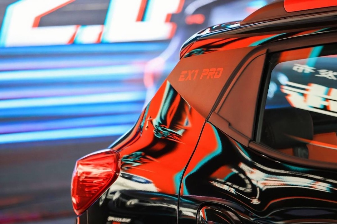 其次,为了尽可能地凸显PRO的身份,新车在C柱上方带有“EX1 PRO”的标识,并且还换上了熏黑轮毂设计,细节之处同样带有红色元素作为点缀,进一步提升辨整车识度。
