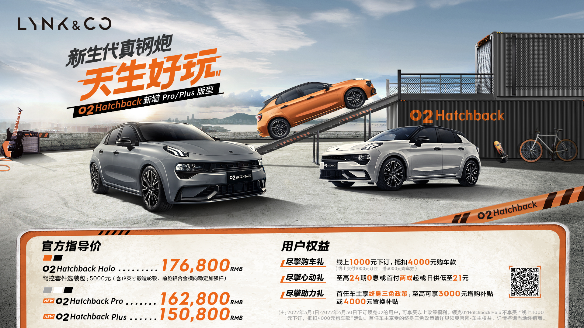 Ø 尽擎购车礼:线上1000元下订,抵扣4000元购车款(领克02 Hatchback Halo除外);