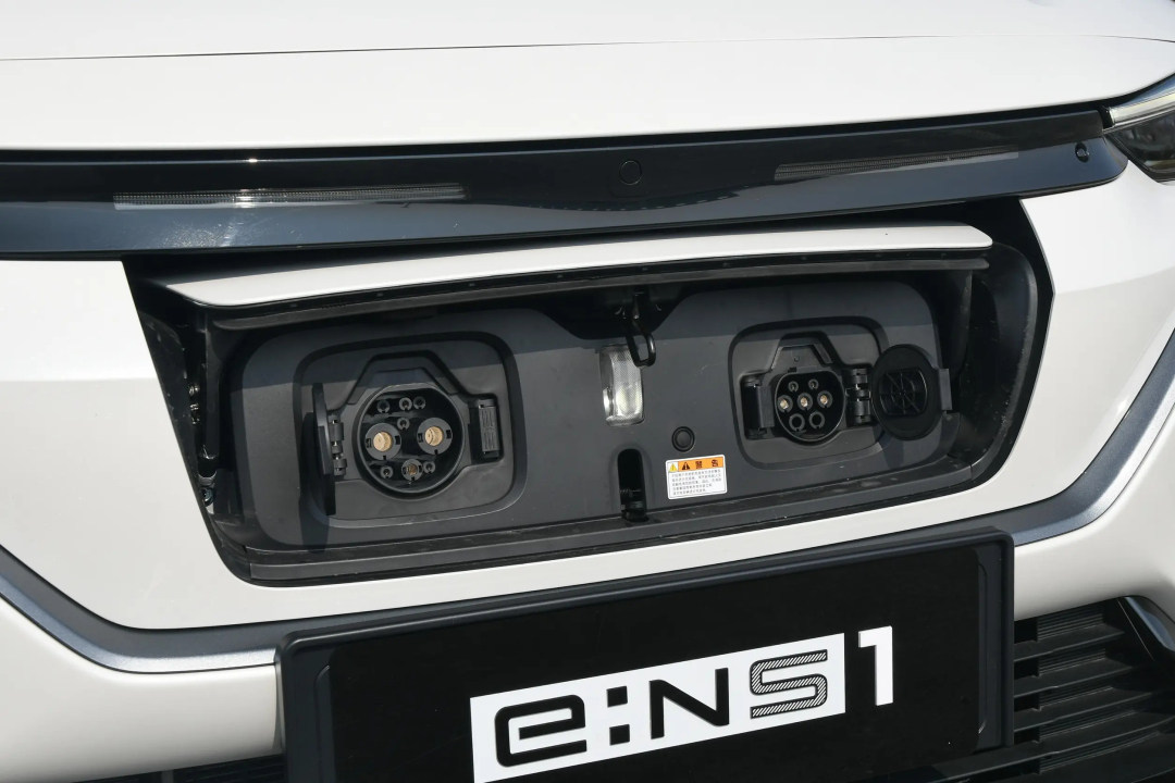 另外值得一提的是,该车的充电接口就隐藏在LOGO后方,可以通过方向盘左侧的开关即可打开盖板进行充电。