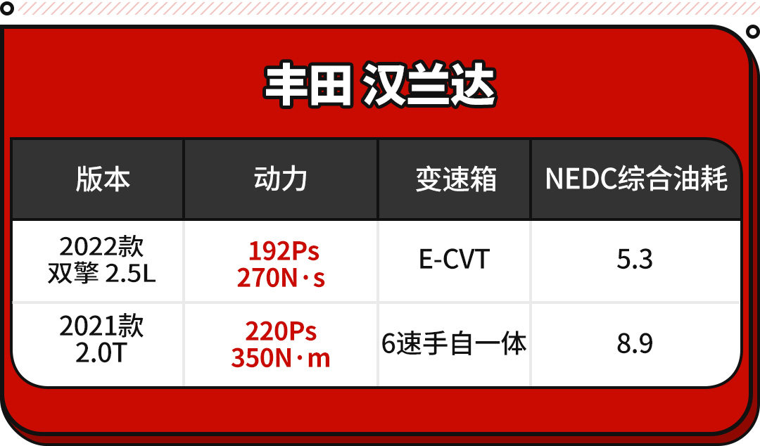 随着汉兰达全新版本升级了TNGA架构之后,动力和燃油经济性都得到提升,但是汉兰达动力选择过于单一等问题也暴露了出来。