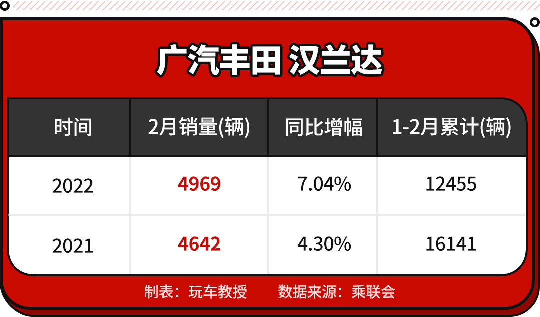 在销量方面看,汉兰达在二月份在国内的销量为4969辆,比起上一年12月份1.44万台的热销,近期销量略显疲态。新款的2.0T汉兰达会提升到足够的产品力能和同级别的产品竞争,相信会给未来汉兰达的销量打上一剂强心针。