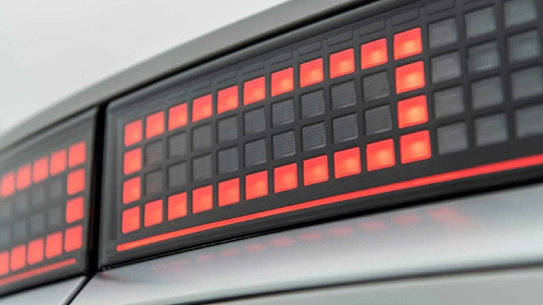 车尾灯完全采用LED像素点灯组设计,可以自定义多种组合,同时整合所有车灯使用场景,像素点的使用既科幻又有复古感。