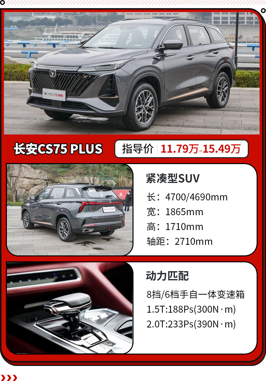 不过对比下来长安CS75 PLUS的外观设计在三辆车中最有特点同时也是最能吸引人的目光,开着他回家能给到亲戚更好的第一印象,而哈弗H6乘坐会更舒服。