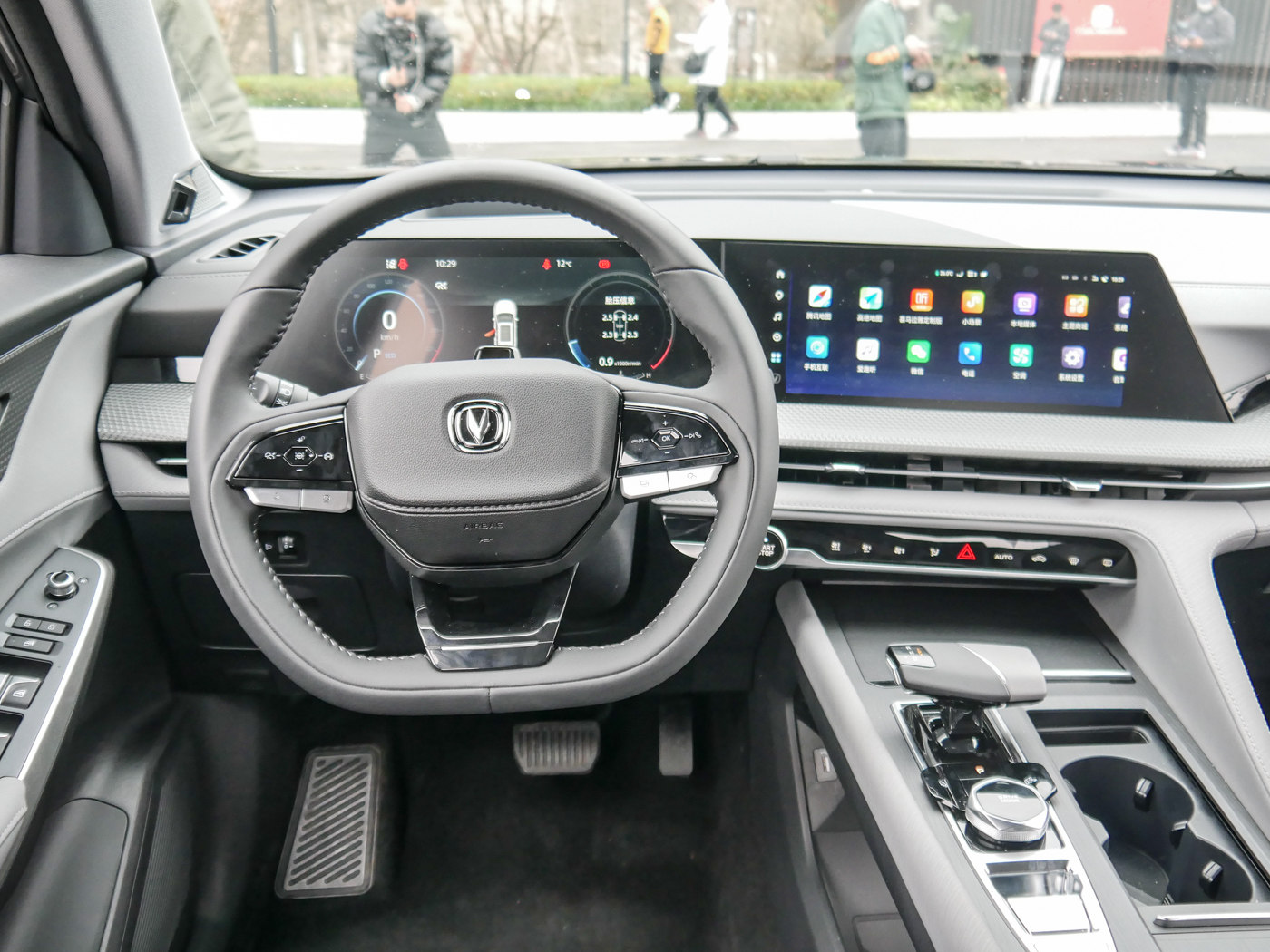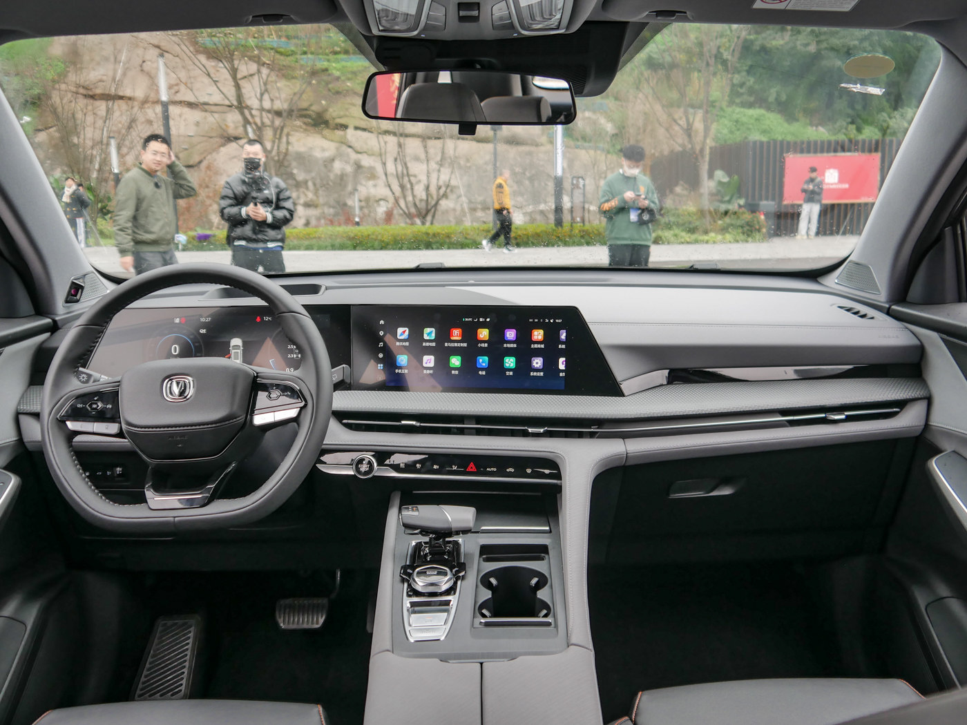 仪表和中控的一体式触摸大屏,展现出了满满的科技感,并且支持手势操控和HDU抬头显示,驾驶也不必分心,满满安全感。