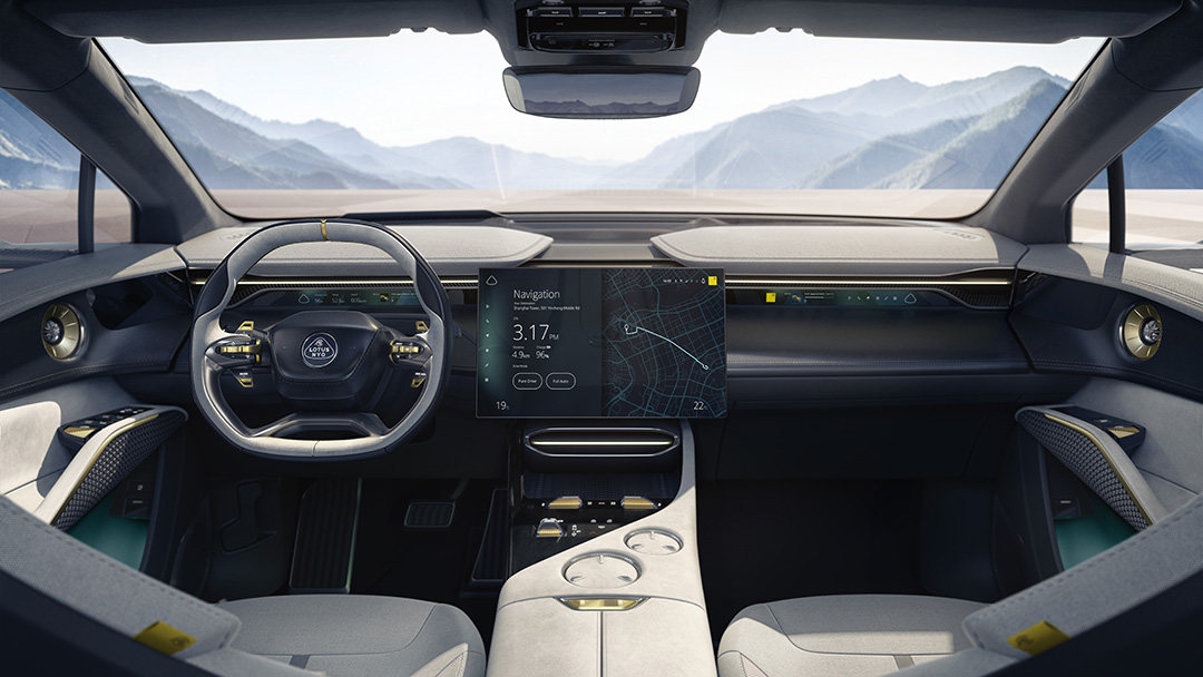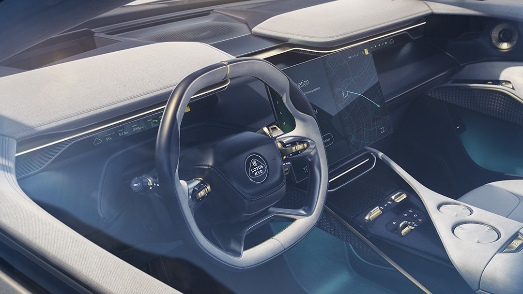 ELETRE采用了极简的内饰风格,但这可并不简单,它营造出一种战斗机般的驾驶感,让人肾上腺素飙升,整体采用T型布局,没有繁多的设计元素,让您能更专注于驾驶,而这也是路特斯的轻量化理念“非必要不使用”。