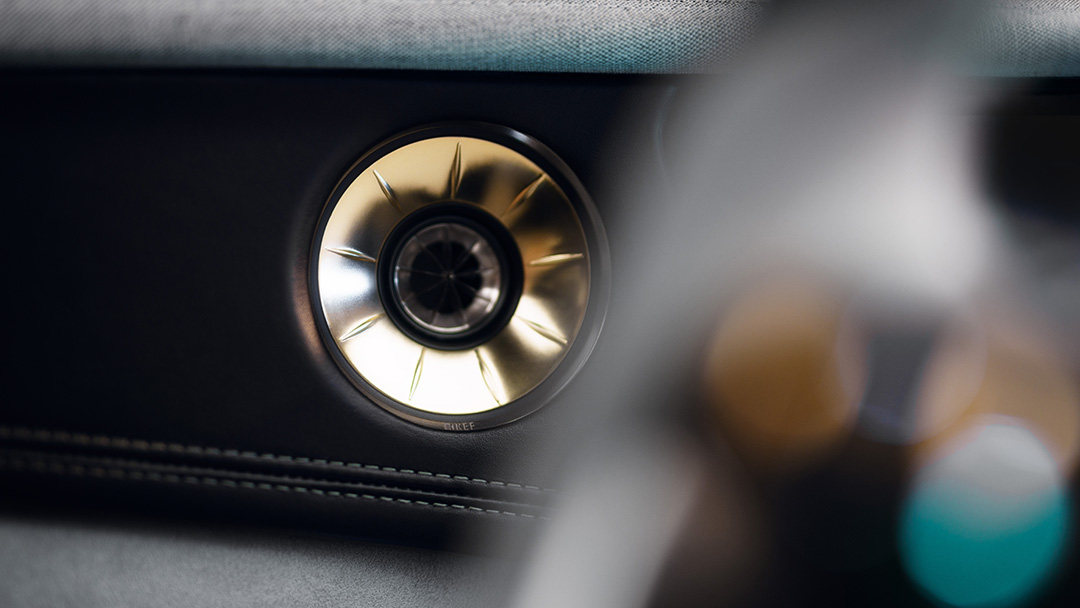 内饰大量采用了复合面料以及轻质羊毛混合物材料包裹,豪华感十足,整体以金色元素进行点缀,带来了精致感,门板上的扬声器样式也相当讨喜。让人知道,原来路特斯在精致感营造上也是一绝。