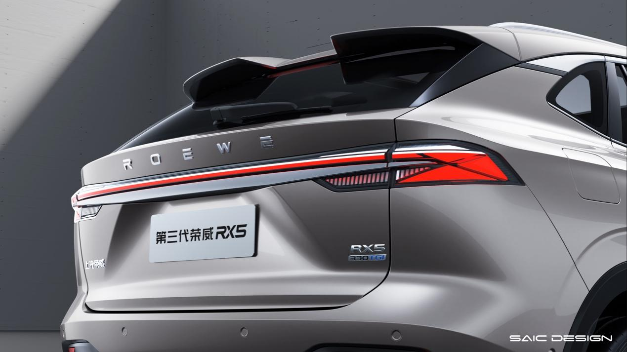 从此次曝光的渲染图来看,相比上一代荣威RX5,全新第三代荣威RX5的外观设计更加前卫,更为宽大的车体造型,营造出更强的视觉冲击力,进一步提升了整车的豪华氛围。