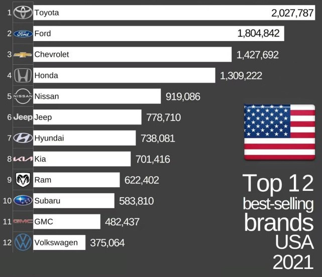 但近日外媒“car industry Analysis”公布了2021年美国汽车品牌销售排行榜,反而他们对品牌的认同却与咱们大不相同,主流的大众就沦为了他们最不受待见的品牌,甚至还没有日系信仰品牌斯巴鲁高,这你敢相信吗?!