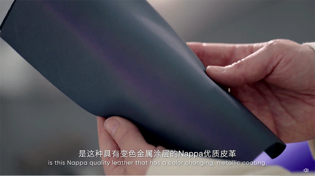 为了让用户获得更沉浸式的科幻体验,此次发布会高合汽车还为大家带来行业首创的幻彩内饰材质。设计师收集了来自世界各地最新、最时尚的材料,并从中获取灵感,开发了一种独特的材料——具有变色金属涂层的Nappa皮质。