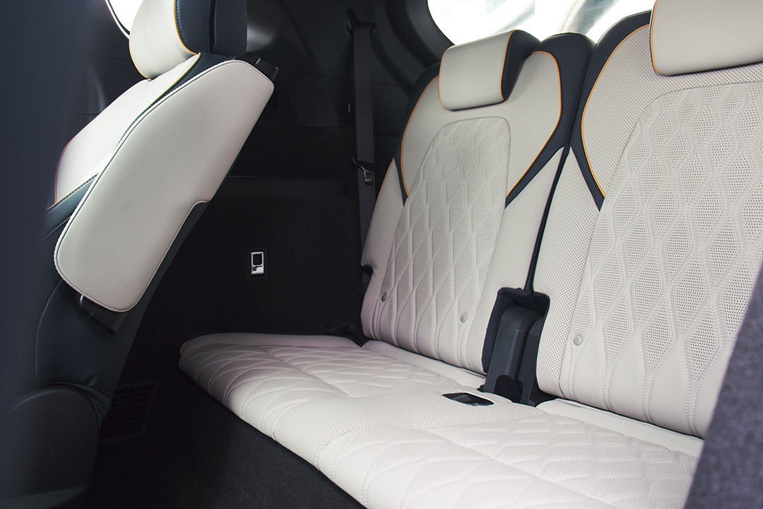 而且由于这两张座椅没有采用非常夸张的“航空座椅”设计,因此在它们之间有一个颇为实用的中央通道,结合可以旋转折叠的中央手枕,为乘客进出第三排提供了便利。