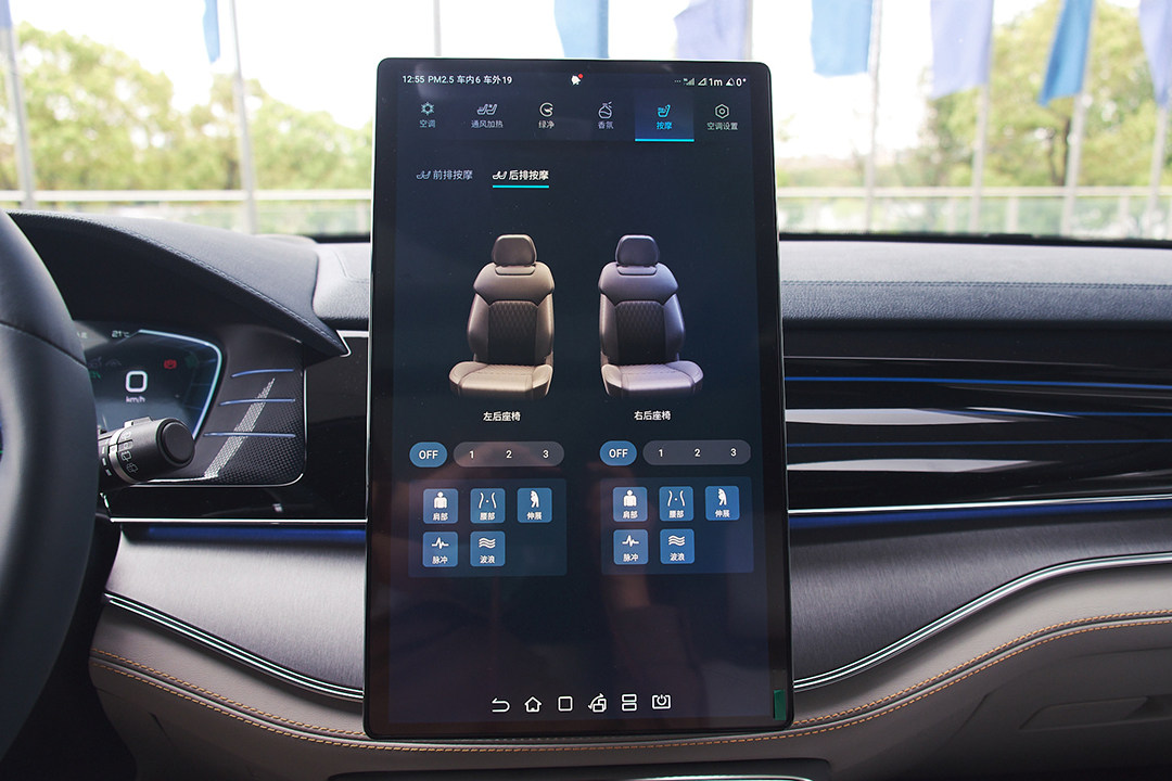 另外,本次静态体验的车型作为系列顶配产品,前排和二排座椅都配备了座椅通风、加热和按摩功能!而且二排座椅也支持多向电动调节,更显高档。