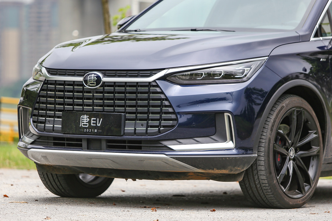 现款唐系列SUV的Dragon Face外观设计风格在当年刷新了自主品牌外观设计水平的上限,虽然如今仍然颜值在线、十分耐看,但唐EV作为纯电动车型在车系中并没有特别强的辨识度。(下图为2021款唐EV)