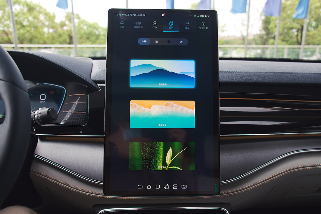 首先,新车搭载了全新的智能香氛系统,能够根据不同喜好选择空山暮雨、灵境清幽和夏风海盐等多种气味;而且这些车载香氛材料全部不含酒精成分,不会对人体带来不良影响,让带着娃的家庭用户更加放心。