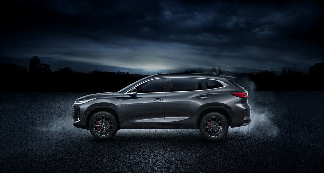 前脸采用了夸张的熏黑式进气格栅设计,内部细节采用了熏黑的横向镀铬饰条所点缀,两侧则带有竖状的LED日行灯设计,视觉冲击感较为强烈。