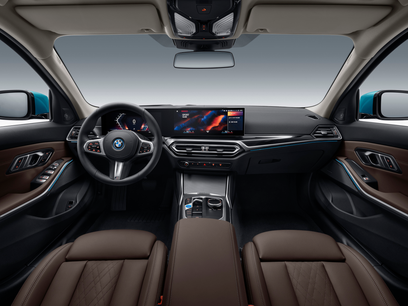 除了“加长”的空间,在座舱驾乘氛围的营造上,宝马i3也懂得如何迎合国内消费受众的审美。宝马i3的造型在一定程度上延续了宝马3系家族式的运动化风格,而在内式座舱则是直接搬运了电动化产品iX家族的设计理念,悬浮式双联屏的出现依然能够说明这一点。