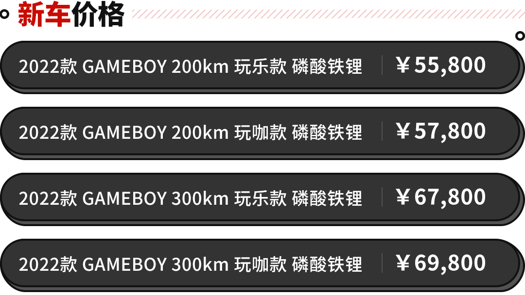 200km玩乐款版本更像是用来拉低入门门槛,并不有利于消费者所选择。该版本仅配备了织物座椅、塑料方向盘等;而200km玩咖款则在200km玩乐款版本的基础上增添了皮/织物混搭座椅、倒车影像、LED日间行车灯配置,这样来看多给2000块钱也不算太贵。