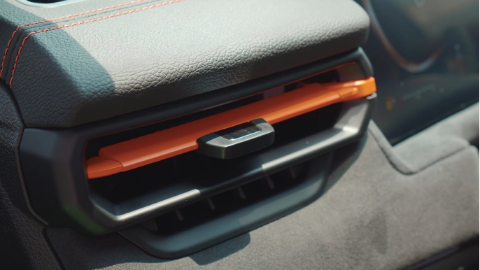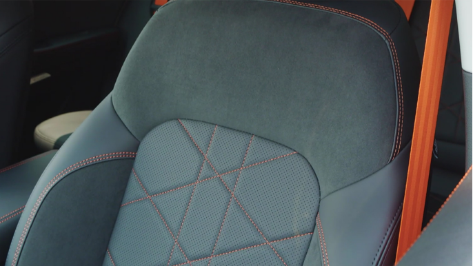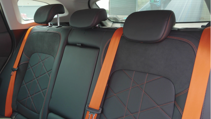 首先它在很多细节上都用上了专属的橙配色,包括多处缝线、安全带、出风口饰板等等。