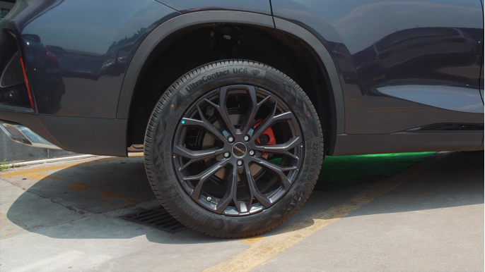 还搭载了19寸的熏黑轮毂,同时用上了红色的刹车卡钳,你们觉得是不是更有性能范儿呢?