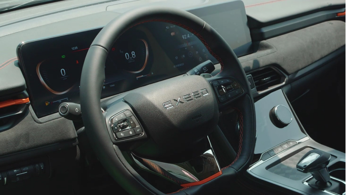 星途凌云S在内饰布局上其实没有太大改变,两个12.3英寸组成的双联屏,平底方向盘、可以触摸的空调面板以及电子档把,整体科技感依然是非常在线的。
