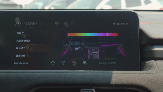 中控这一块它搭载的是雄狮智云4.0系统,里面有比较多的互联网功能,百度地图、唱吧、QQ音乐等等,同时它还支持整车OTA升级。