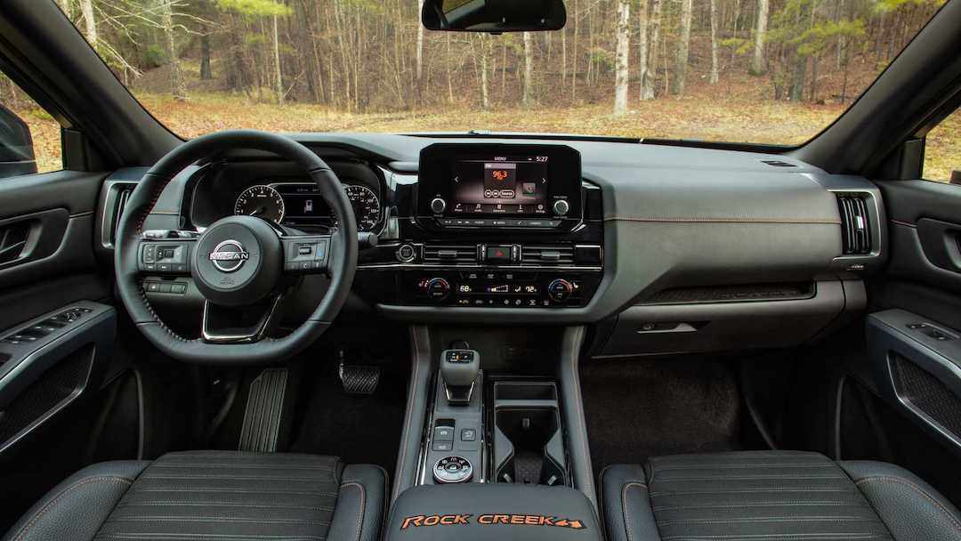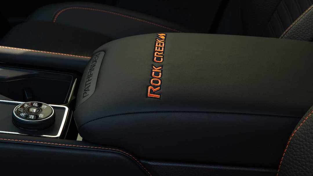 内饰方面,整体来看日产Pathfinder Rock Creek特别版的内饰设计其实与普通版本的内饰基本框架是一致的,但在细节的地方会带有特别版专属的设计元素。