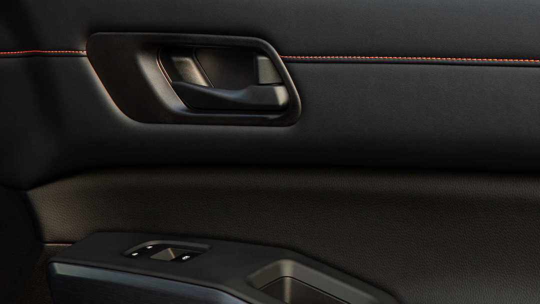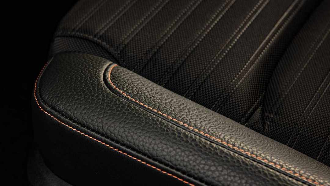 比如,方向盘、座椅、扶手以及门板等缝线处采用了橙色的缝线处理,显得更加的活力。