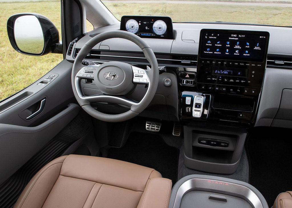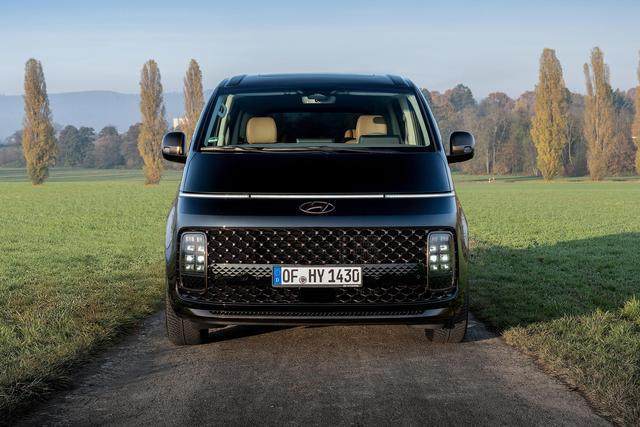 确实,当教授第一看到实车的照片时,真的差点以为这是新能源车系,但是实际的身份却是传统的纯燃油车,现代Staria极具科幻的前脸多少有些迷惑效果,机盖上横贯的LED灯带,以及方正的前格栅且内嵌的灯组,假装“新能源”的效果马上立竿见影。