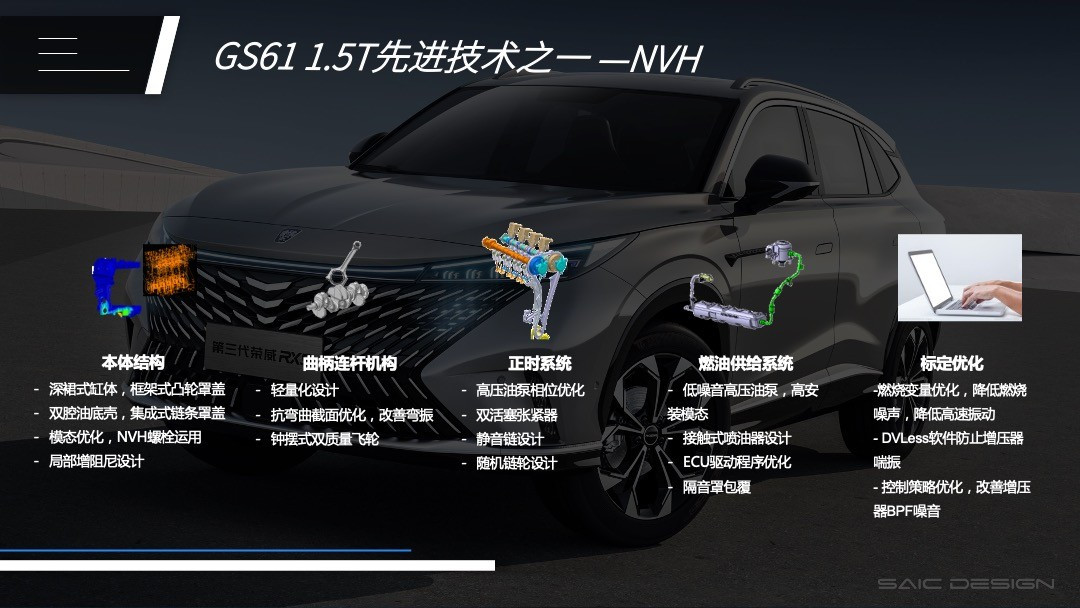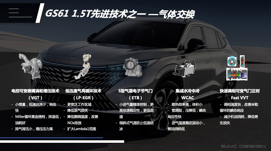好了,回到这台GS61 1.5T发动机上面,它是上汽集团首款聚集了众多新技术的发动机产品,在传承“双十佳”动力总成基因的基础上,实现了五大升级: