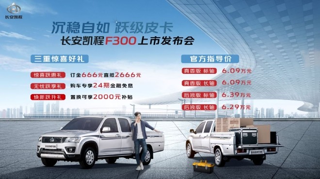 所以,物美价廉的长安凯程F300这辆皮卡上市了。4月13日,长安凯程F300正式上市,售价区间为6.09-6.39万元,定位为中型皮卡。