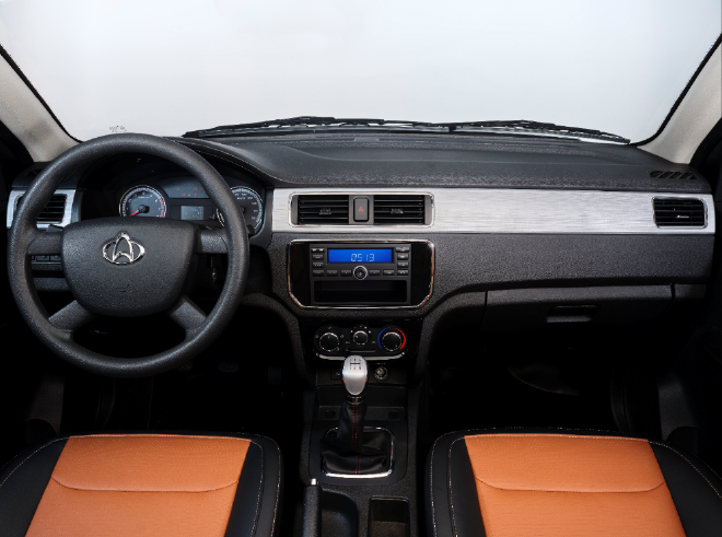 长安凯程F300的内饰也是如此,相当简洁。传统的机械仪表加上一块液晶显示屏,仪表板、门板装饰都有金属拉丝银和钢琴烤漆高亮黑的装饰,中控具备收音机和USB接口,可以满足许多基本功能,整车内饰务实朴素。