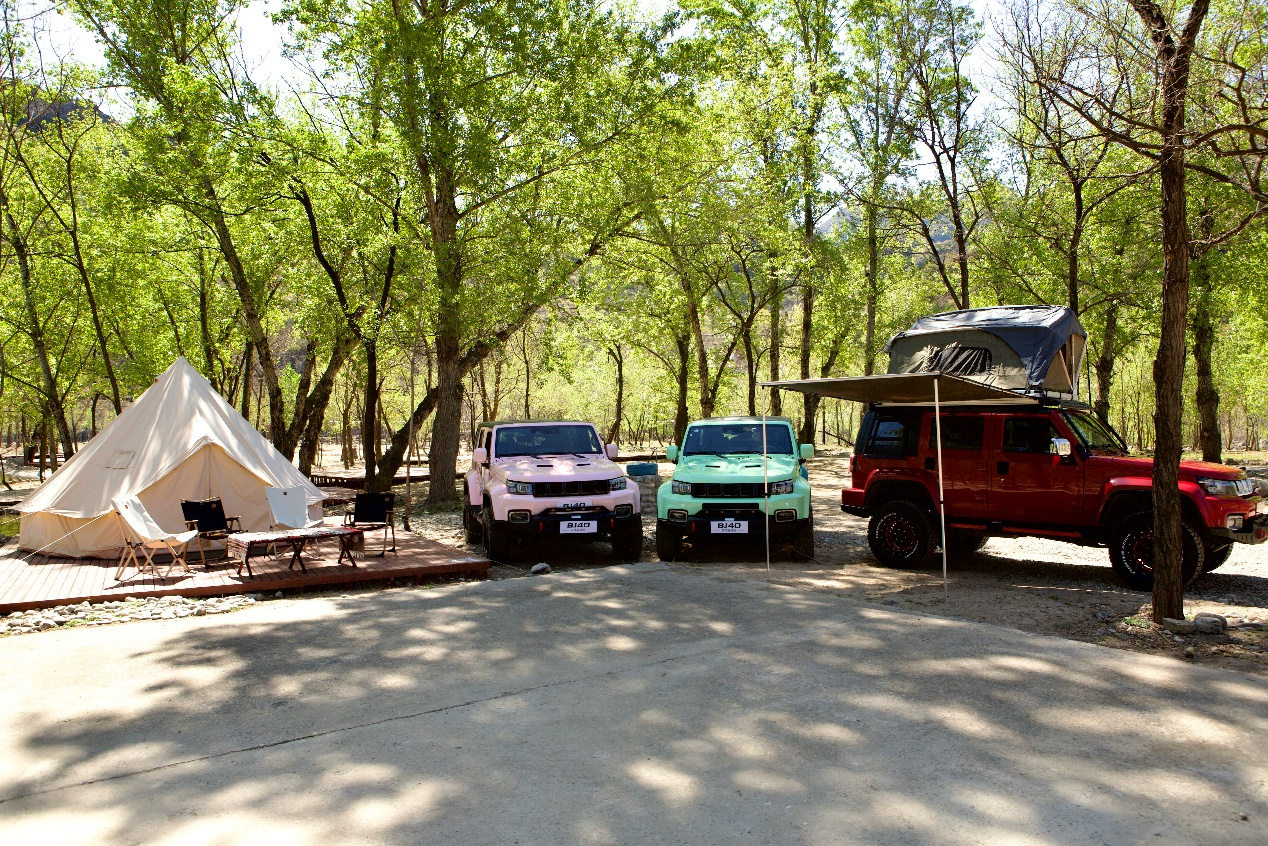 本次直播中,北京越野向用户推荐了三个改装版本,分别是可爱系、国潮古风、露营风。女生最爱的可爱系BJ40一身粉色,可谓独特的女粉识别色。国潮古风则是“天青色等烟雨”的格调,被网友亲切地成为“千里江山版”。露营专版,则增加了侧面天幕,无论走到哪里,在车旁一卷一支,轻松搞定,非常方便野外露营。
