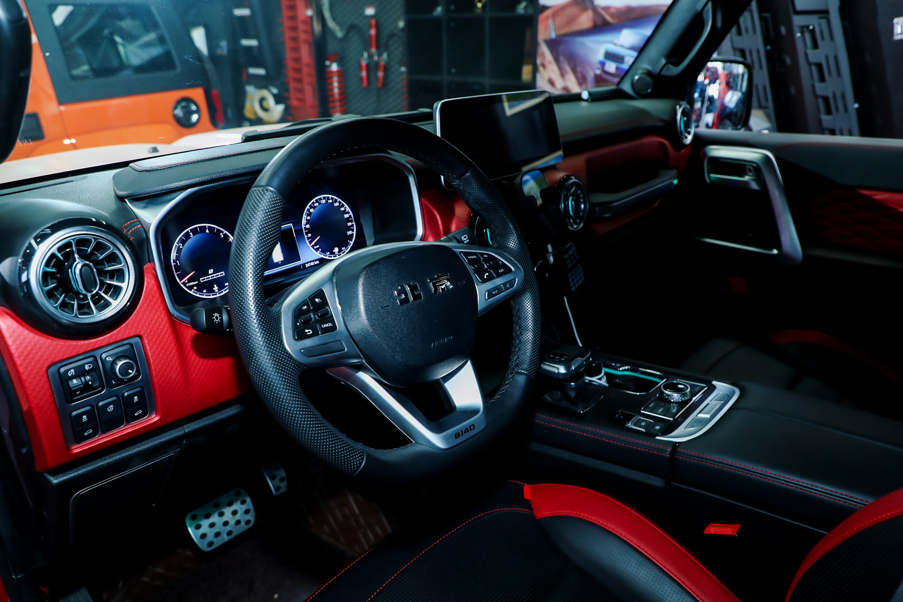 内饰的改装,也充分考虑了女性粉丝的用车特征,定制备胎罩,凸显女性粉丝喜欢呵护爱物的天性;座椅、内饰门板、真皮方向盘,都进行了舒适化改进。橙色的中控台方案,更是粉色之外,女生最爱的性别色。当然,如果喜欢在越野时欣赏高音质的音乐,那么全车隔音强化,以及豪华的丹拿音响,都是必选项。
