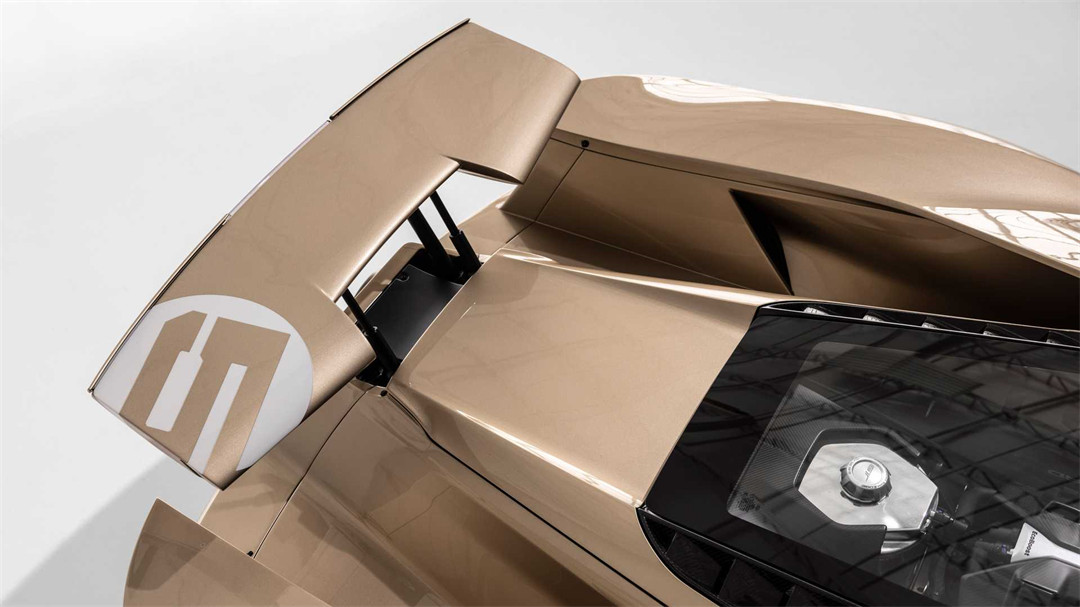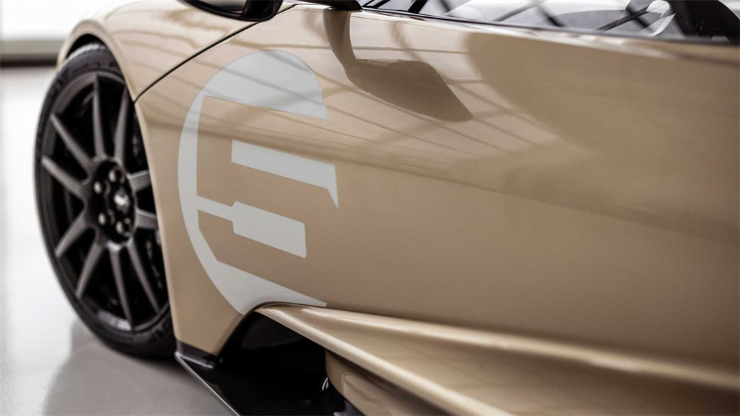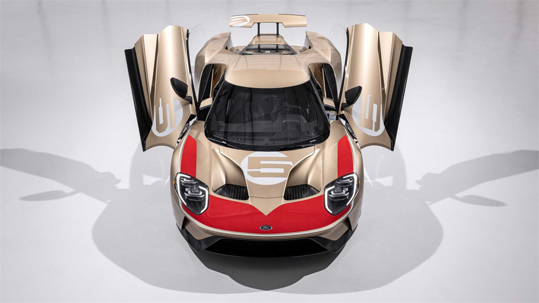 与此同时,在机盖处、后尾翼以及两侧的门板处均带有“5”数字拉花设计。据悉,该车身配色的设计灵感源自于1966年的勒芒24小时耐力赛中,获得第三名的GT 40赛车(赛车编号为5)。
