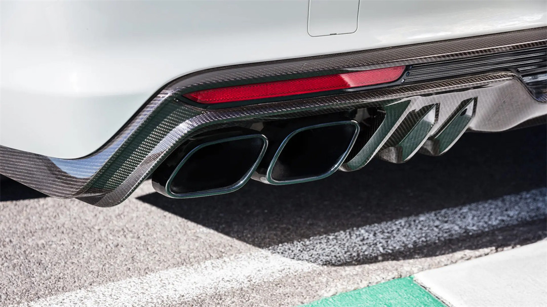 下半部分更是带有更夸张的扰流扩散器设计,双边双出的排气布局更是把整台车的性能范突显得淋漓尽致。