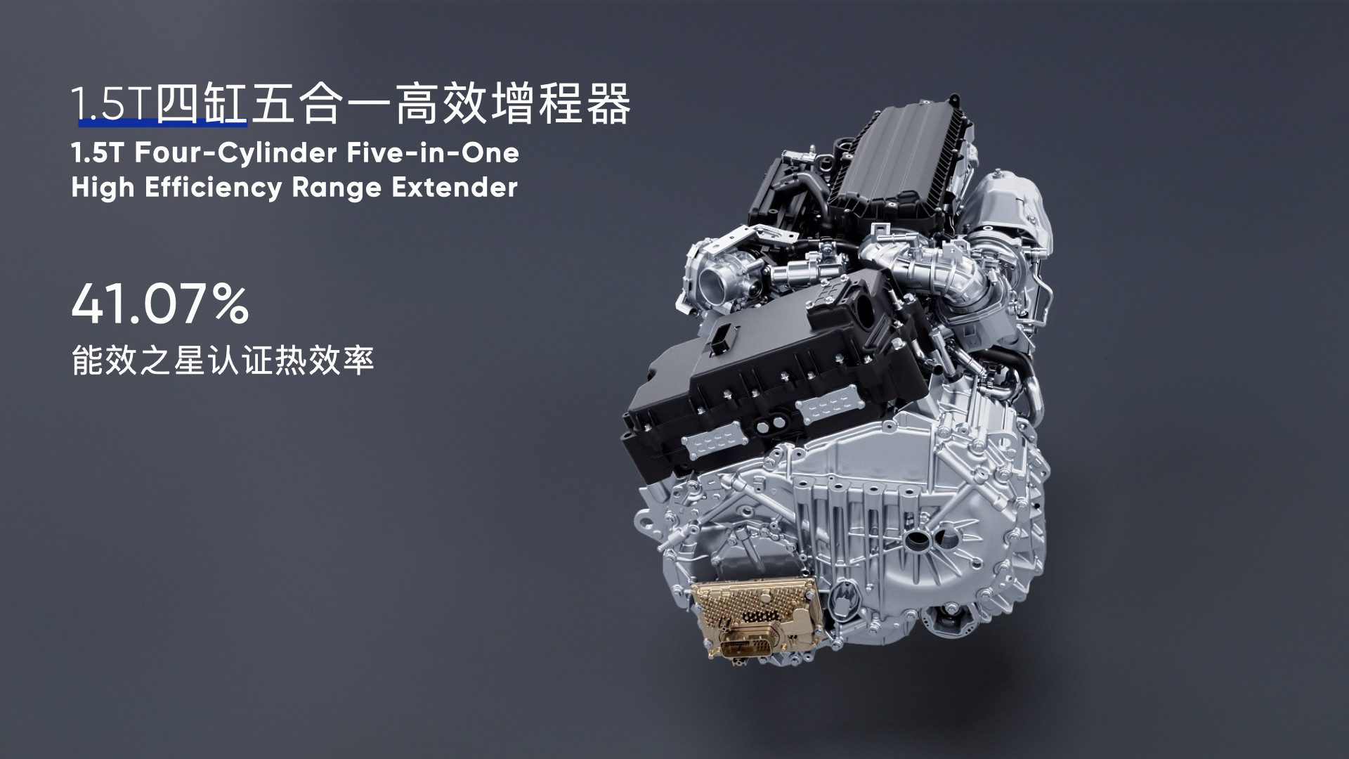 1.5T四缸五合一高效增程器,能效之星认证热效率达41.07%