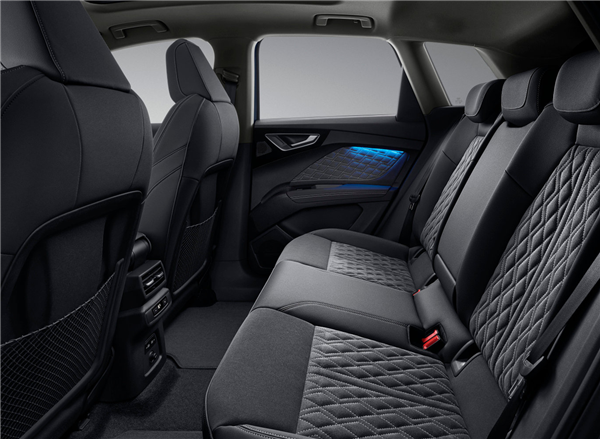 值得一提的是,奥迪Q4 e-tron内饰还为国内市场做出专属升级。包括仪表台“New-tec”包覆材质、内饰铝饰条、运动座椅两种皮质拼接面料及仪表台、座椅及车门内饰板对比色缝线等。