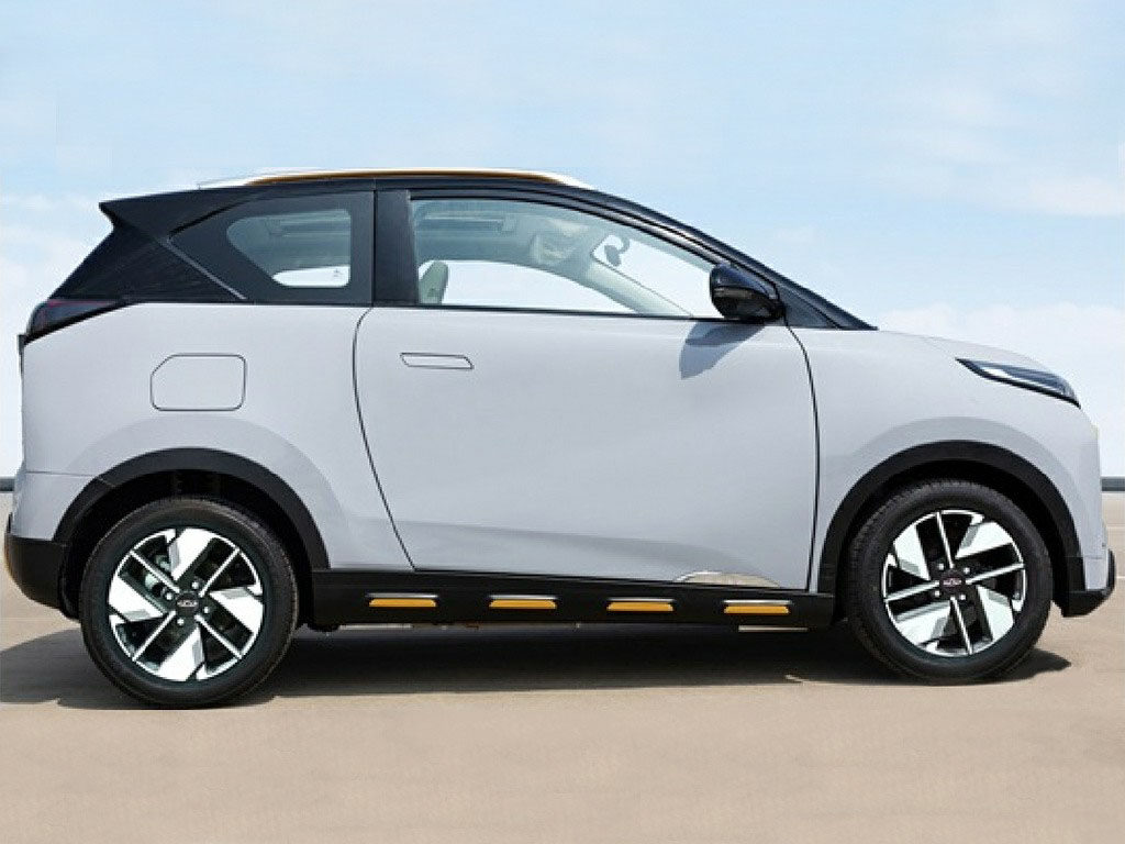 无界PRO整车明显借鉴了轿跑的设计,车身比例与奇瑞小蚂蚁相似,总体设计十分圆润、可爱,显得非常饱满。