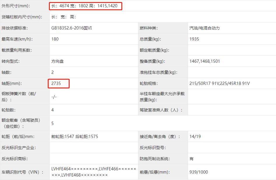新车长宽高分别为4674*1802*1415(1420)mm,轴距为2735mm,车身尺寸基本维持不变,只是车身高度会在某款特定的车型上会存在一定的差异!