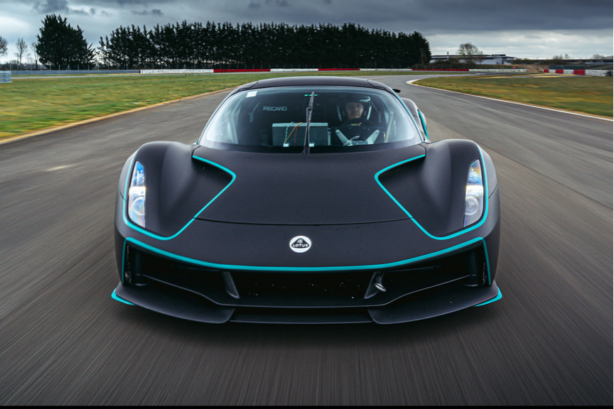 全球限量130辆的Evija是路特斯首款纯电顶级超跑,凭借可怕的2,000马力目标输出功率,成为史上动力性能最强劲的量产公路车。Evija继承路特斯空气动力学技术基因,撷取战斗机灵感,借鉴了勒芒赛车空气流体应用方法,使用风道引导气流贯穿车身壳体,创造出独属于路特斯的“孔隙式”设计语言,在降低风阻的同时,带来了超强下压力。