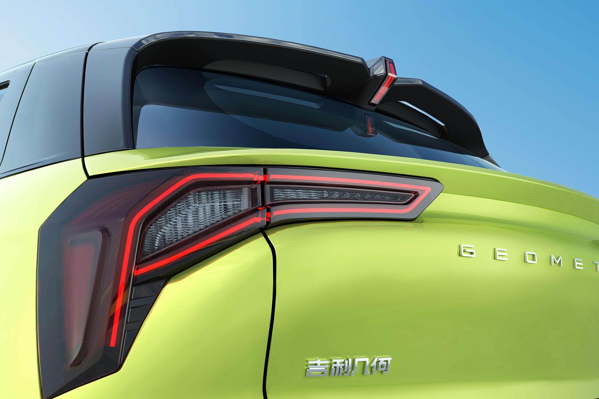 车尾部分也没有过多的元素设计,一对倒L字型的尾灯加上高位刹车灯和字母标识是几何E的车尾,和在售的几何C、几何A不同,简洁的几何E似乎更具未来感。此外,几何E还搭载半隐藏式的门把手和五辐低风阻轮圈,拥有薄荷、青蔓、茉莉、蓝莲等4种双色车漆。可以看出,受众都是偏向于年轻化的。